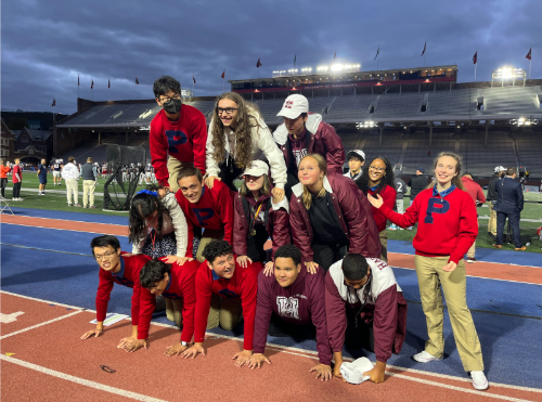 The last couple of hours leading up to the long anticipated performance were spent learning the drill alongside the rest of the Penn Band. Of course, during the weeks leading up to this trip the Harrison Band had been hard at work spending hours practicing individually and as a group at additional rehearsals to ensure a high quality performance. After getting used to playing with college students, they went on to share the most important tradition: the “Scatter Routine.” This entails running around and screaming to create chaos during the transition period between songs. This was a very new experience for most members of the Harrison band as typically a very specific and organized drill is created for each individual member of the band and learned during Band Camp in the summer, prior to school and the football season. The experience was special for the band as they got to experience how other schools, specifically Ivy League schools, get swiftly organized to put on a show.